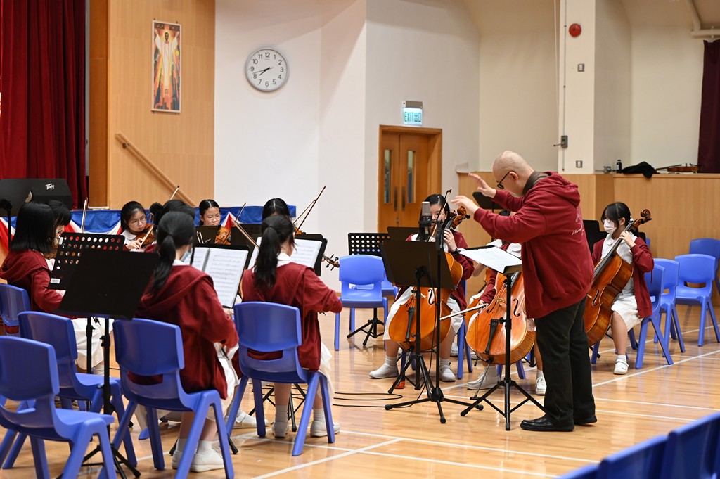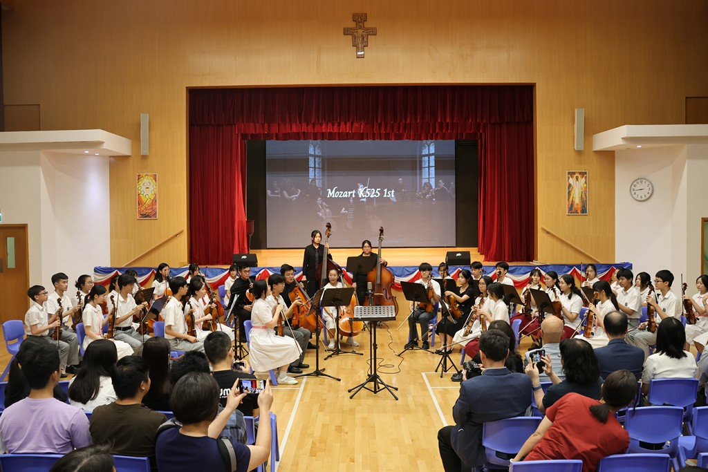 Joint school string orchestra play music that echos in the heart.