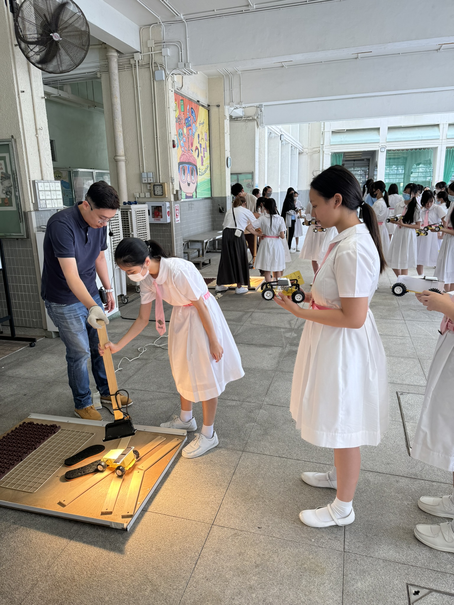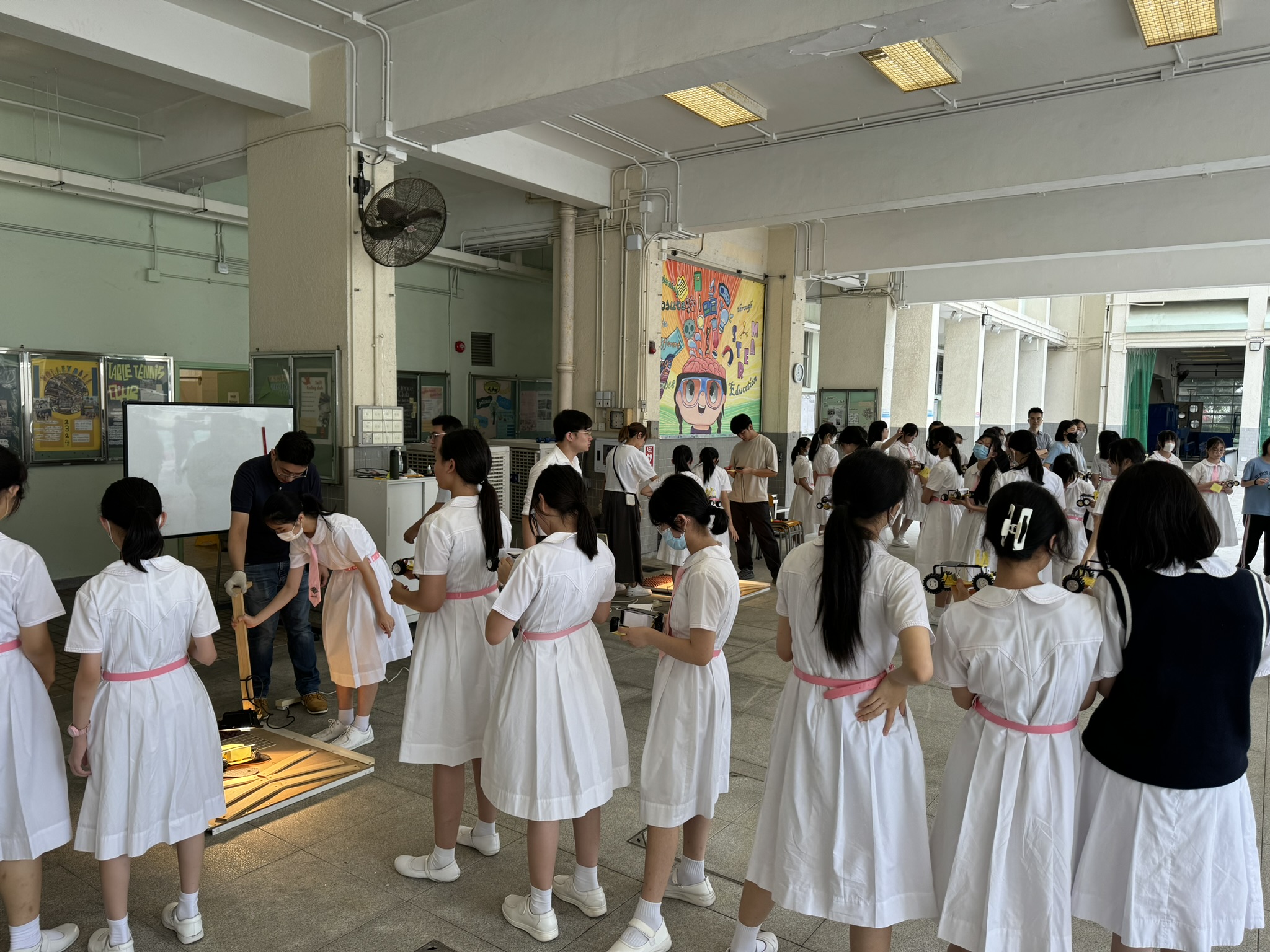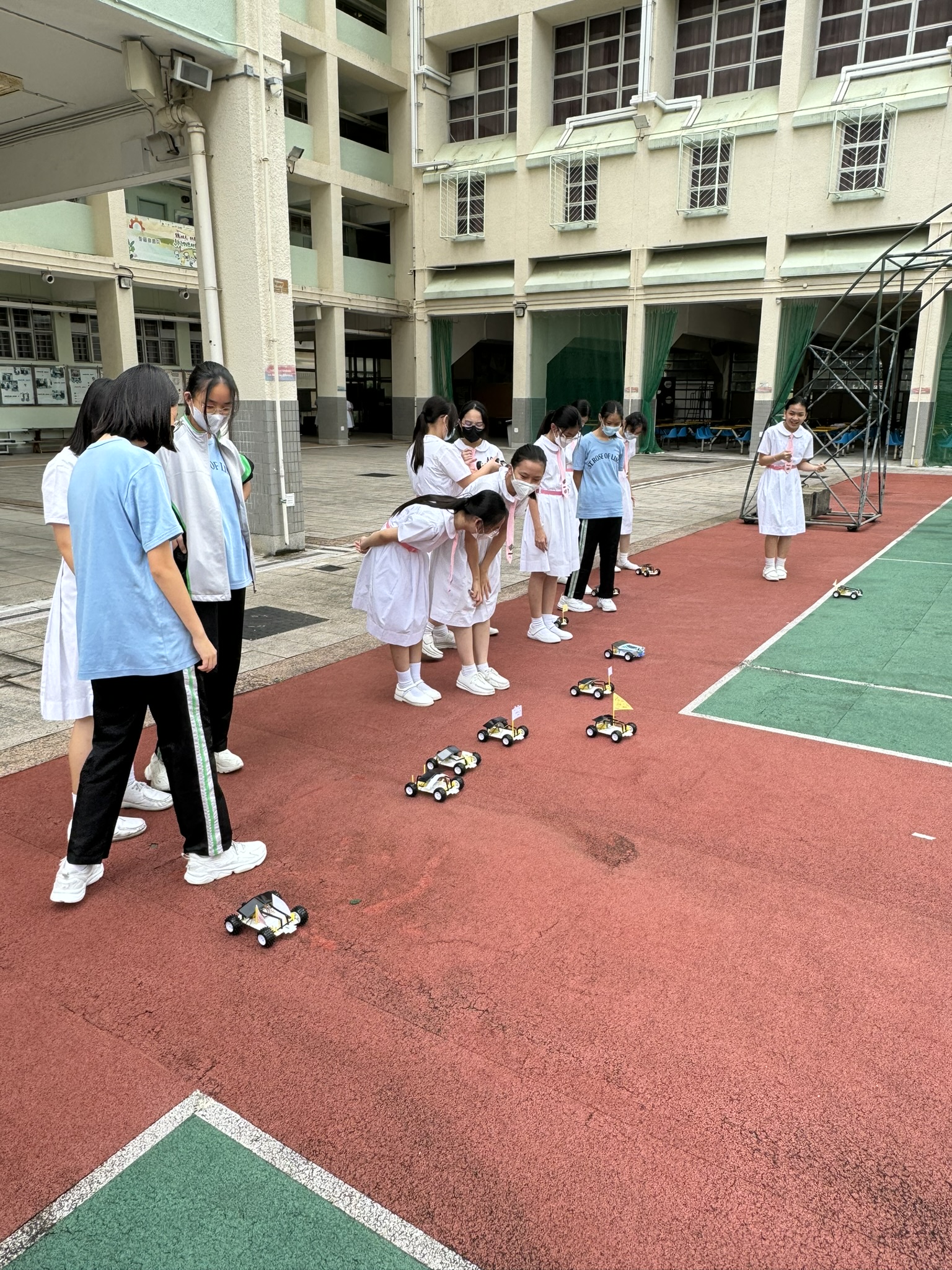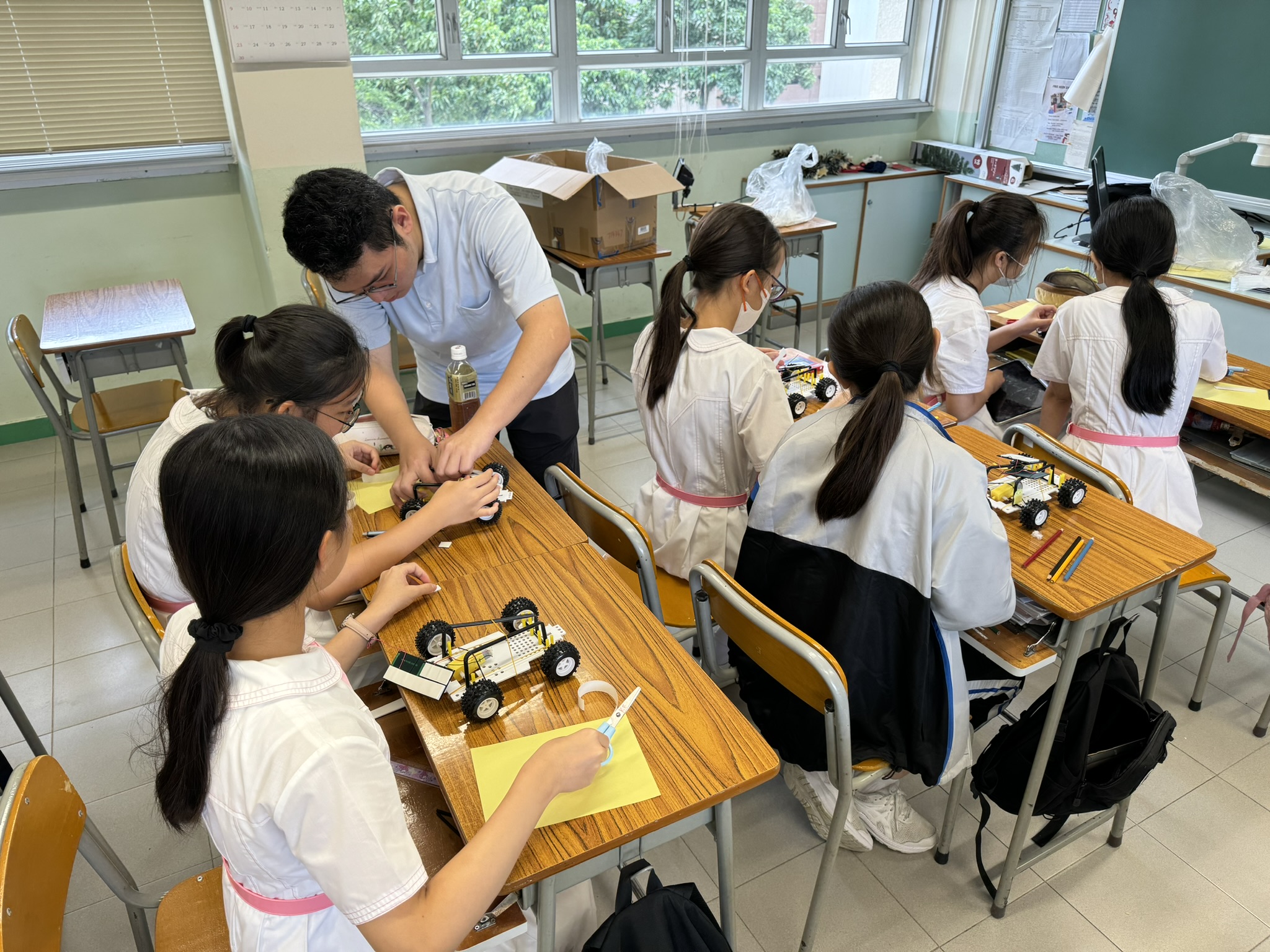 Form 1 students learnt and applied STEM knowledge to construct and test solar cars by themselves.