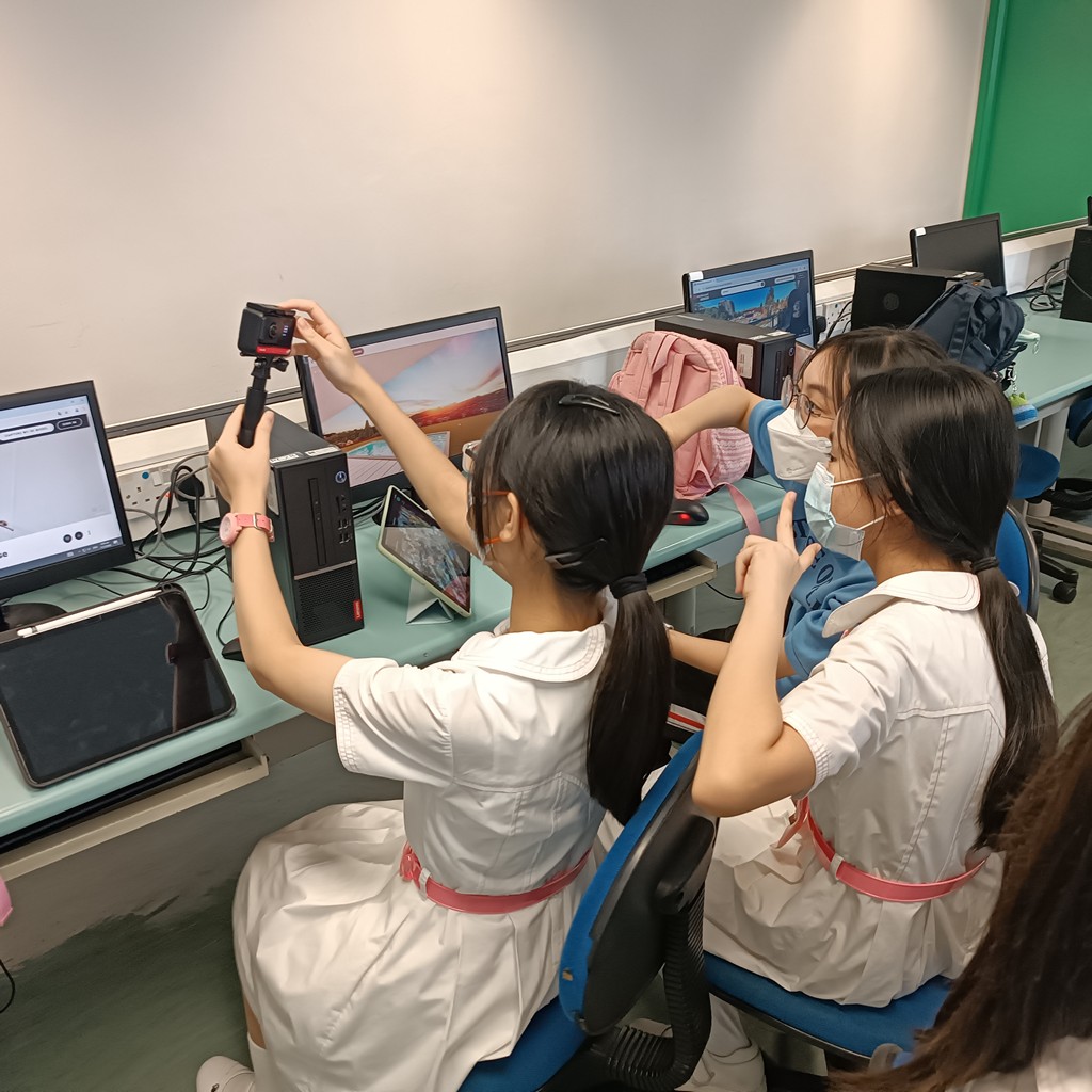 Form 1-2 students learnt how to control insta360 equipment to produce the virtual school tour.